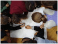 olhos fechados e os demais se colocam ao redor com os objetos estimuladores. O